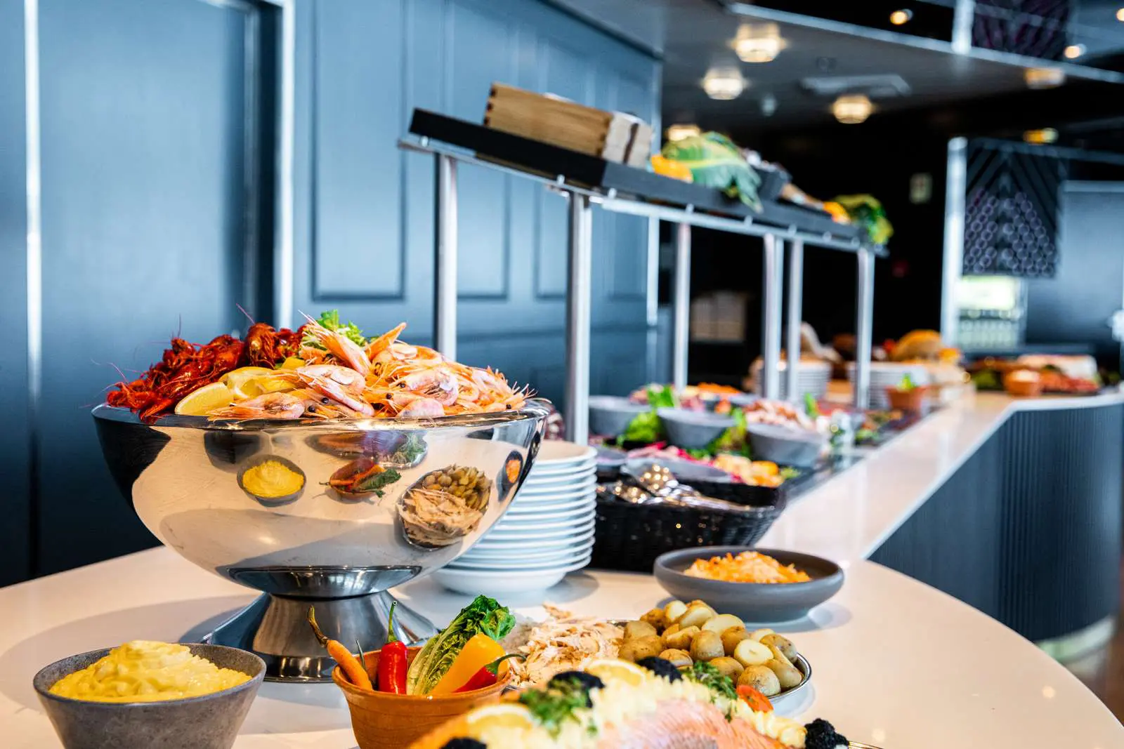 Dégustez une variété de repas à bord dans nos trois restaurants et deux cafés. Des collations légères aux excellents déjeuners et repas raffinés, il y a de quoi satisfaire tous les goûts.