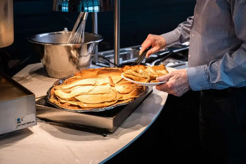 Commencez la journée avec un copieux buffet de petit-déjeuner composé de pain et de viennoiseries fraîchement sortis de notre boulangerie à bord, accompagnés de charcuterie, de fruits frais, de yaourt et de céréales. La sélection chaude comprend des œufs brouillés, du bacon, des saucisses et des pancakes, servis avec du jus, du thé et du café – la manière idéale de commencer votre journée en mer.
